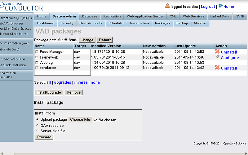 - Install ODS Weblog Manager and ODS Feed Manager VAD packages.