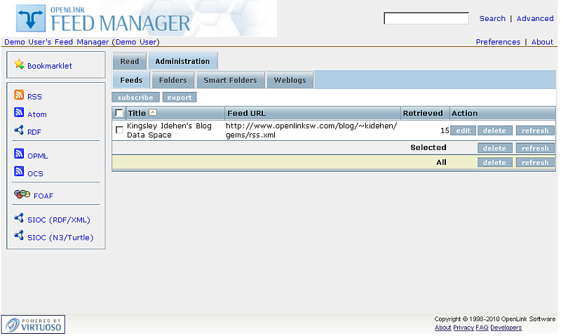 - Click the "edit" link for the subscription "Kingsley Idehen's Blog Data Space".