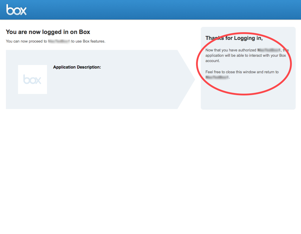 - Box will confirm that ODS has been authorized, and you can close that browser window/tab.