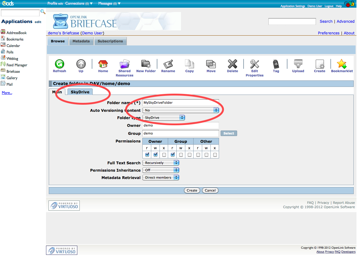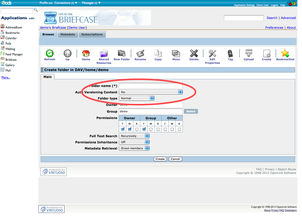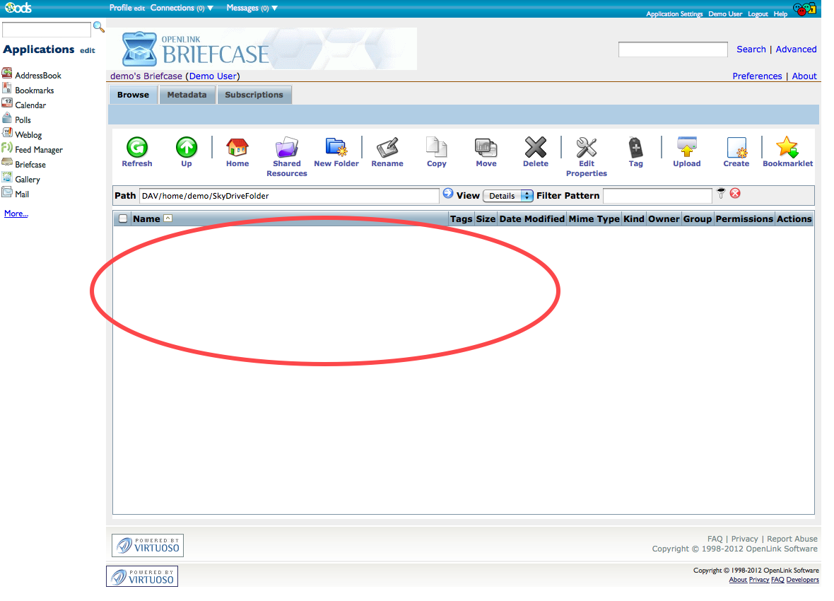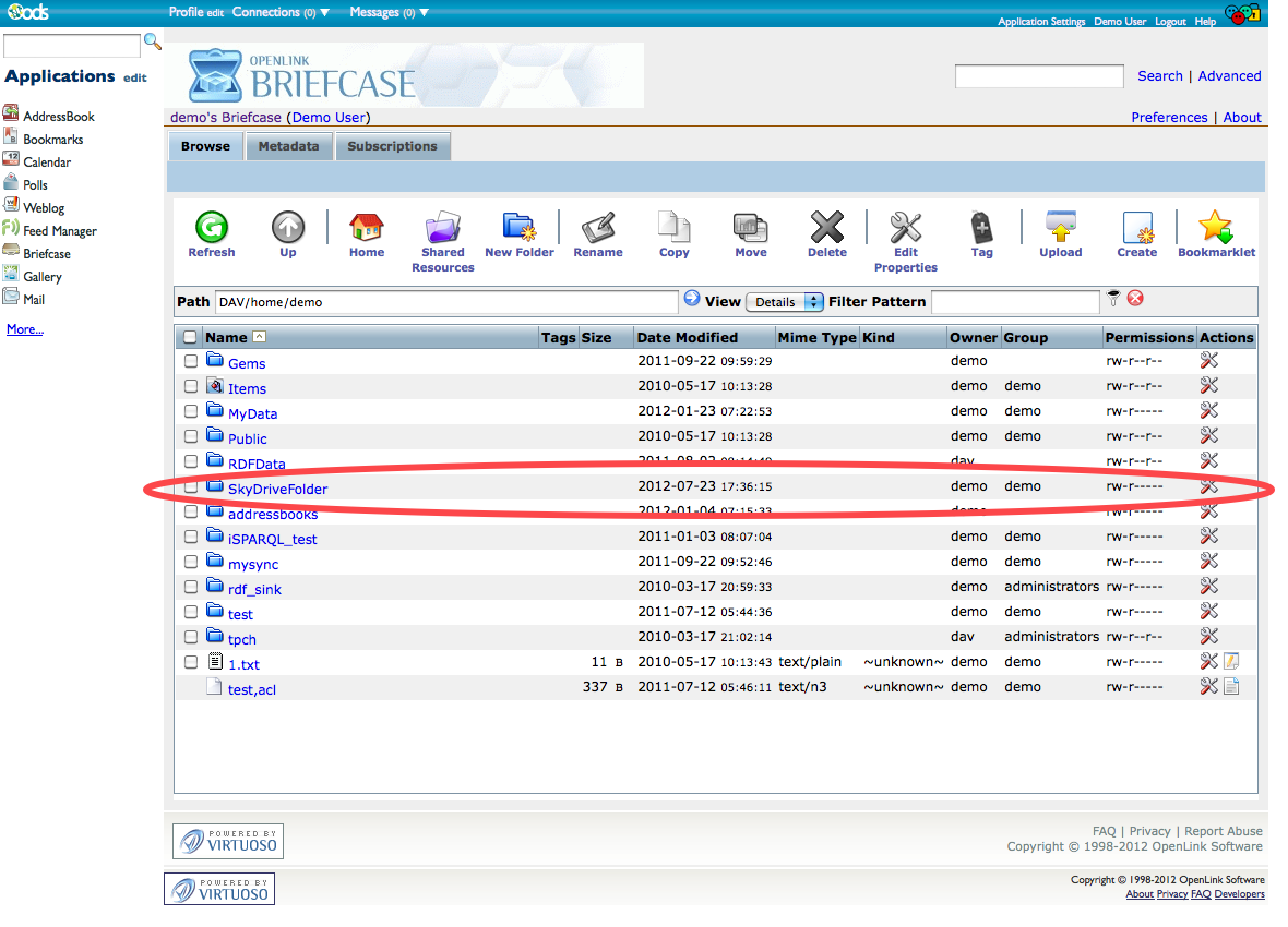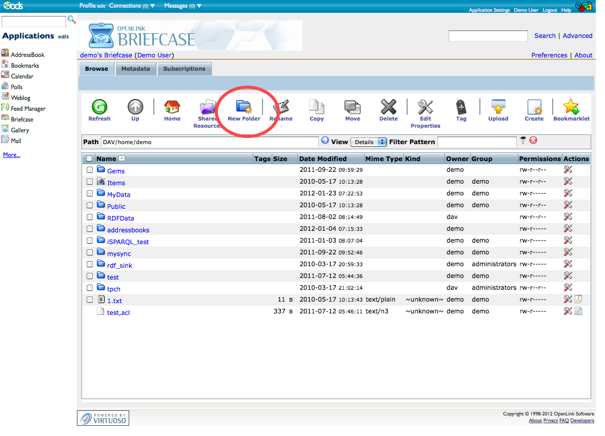 2. Log in as a Virtuoso+ODS user with normal privileges, e.g., demo.